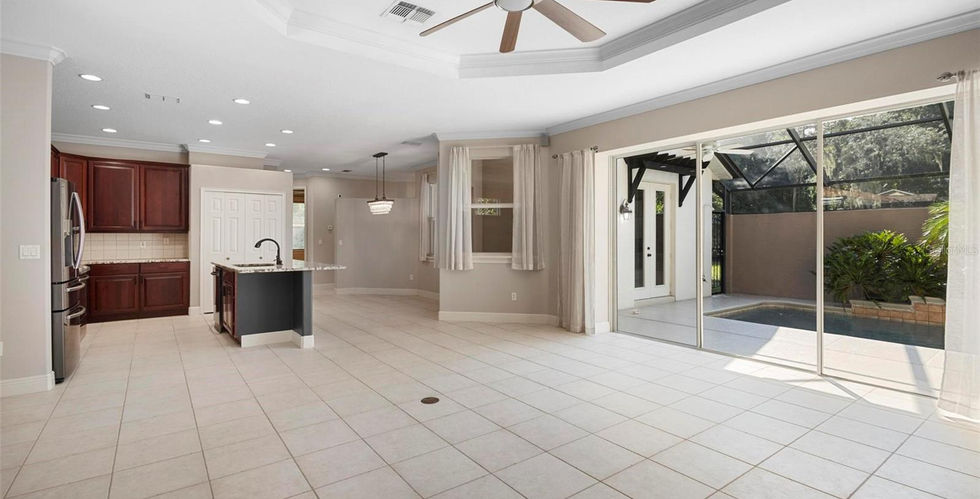 Welcome to 587 Kings Castle Dr. in Orange City, a stunning courtyard home offering privacy and luxury in every corner. Step inside to find 9.5-foot ceilings, elegant crown molding, and 8-foot doors, creating an open and airy atmosphere throughout the home. The upgraded kitchen features 42" cabinets, granite countertops, and modern finishes, perfect for any chef. A custom hardwood entertainment center adds a stunning look to the living area, while the master suite, main house, and in-law suite each enjoy the comfort of separate 3-zone A/C and heating systems. Outdoors, enjoy Florida living at its finest in the screened courtyard with eyebrow pergolas surrounding the Pebble Tec pool and hot tub. The professionally landscaped yard, fire pit, and parklike greenspace on the side and back of the home provide a serene retreat with no neighboring homes in sight. This home also features 3-panel sliding glass pocket doors, tile showers, a garden tub, and premium finishes throughout, offering a perfect blend of comfort and elegance.